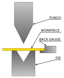 رسم توضيحي لعملية ثني صفيحة معدنية إلى شكل حرف V