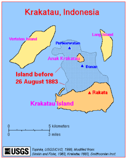 خريطة كراكاتوا بعد ثوران 1883 تظهر التغير في الجغرافيا