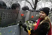 - اليوم الحادي عشر 1 كانون الأول 2013 بدء المسيرة المليونية في كييف، بعد ساعات توجه المتظاهرون نحو المقر الرئاسي وتم وضع حواجز لمنع وصولهم من قبل قوات مكافحة الشغب في شارع بنكوتا وتم القاء القنابل التخديرية والمسيلة للدموع لتفريق المتظاهرين