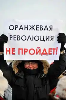 - Putin calls 'color revolutions' an instrument of destabilisation, Kyiv Post (15 December 2011) نسخة محفوظة 16 فبراير 2020 على موقع واي باك مشين.