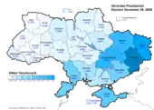 فيكتور يوشينكو (الجولة الأخيرة) - النسبة المئوية لإجمالي الأصوات الوطنية