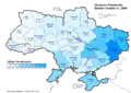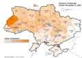 - فيكتور يانوكوفيتش (الجولة الأولى) - النسبة المئوية لإجمالي الأصوات الوطنية