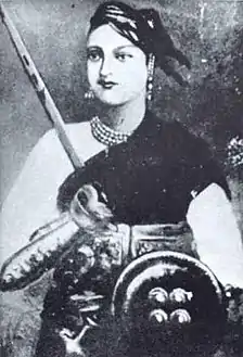 لاكشميباي، ملكة مارثا-حكمسي إحدى القادة الرئيسيين للتمرد التي فقدت في وقت سابق مملكتها نتيجة مبدأ الانقضاء.