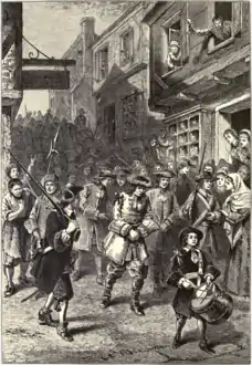 ![]() رسم يعود للقرن التاسع عشر لإلقاء القبض على الحاكم أندروس خلال ثورة بوسطن القصيرة. | |||||||