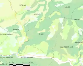 تييري (بالفرنسية: Thiéry) هي بلدية فرنسية تقع في إقليم الألب البحرية من منطقة بروفنس ألب كوت دازور في جنوب شرق فرنسا. تبلغ مساحة هذه المدينة 22.24 (كم²)، وترتفع عن سطح البحر 1050 م، يبلغ عدد سكانها 101 نسمة حسب إحصاء المعهد الوطني للإحصاء والدراسات الاقتصادية سنة 2009 م. وترأس Jean-Marie Aubert البلدية خلال فترة (2008-2014).[7]