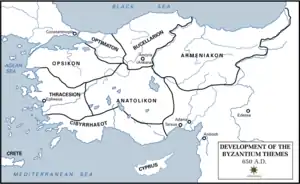 - ثيمة الأناضول: ورد ذكرها أول مرة سنة 669 م، وقد ورثت جيوش الدولة في الشرق، وقد غطت منطقة وسط آسيا الصغري، وكانت عاصمتها عمورية.