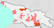 في 7 مارس، جاءت نتائج ثلاثة أشخاص إيجابية لفيروس كورونا الجديد في جورجيا ما رفع العدد الإجمالي للأشخاص المصابين في البلاد إلى اثني عشر. قال رئيس المركز الوطني الجورجي للسيطرة على الأمراض، أميران غامكريليدزه، في مؤتمر صحفي في اليوم التالي، أنه لا يوجد سبب للذعر. أحد المصابين هو نجل غامكريليدزي نيكولوز. كتب غامكريليدزه على صفحته على فيسبوك أنه أصيب بالمرض من زميل له في العمل جاءت نتائج اختباره لكوفيد-19 إيجابية يوم الأربعاء. علقت جورجيا رحلاتها المباشرة مع إيطاليا لمنع انتشار فيروس كورونا في البلاد. إذ أن معظم حالات الإصابة بفيروس كورونا في جورجيا اكتُشِفت في عائدين من إيطاليا مؤخرًا.[36]