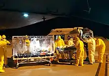 - في 19 فبراير، كشفت زوجة المريض أنه التقى بصديق إيطالي كان قد عاد من الصين في 21 يناير، وكانت نتيجة اختباره سلبية فيما بعد.[31] في وقت لاحق، كان المريض وزوجته الحامل وصديقه إيجابيًا.[31]