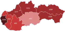 | التاريخ | براتيسلافا | جيلينا | كوشيتسه | ترنافا | ترينشن | بريشوف | بانسكا بيستريكا | نيترا | مؤكدة | وفيات | المعافاة | المفحوصة | المراجع | ||