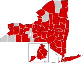 في 16 مارس، أبلغت مقاطعة كلينتون عن حالتها الأولى، في مركز سي في بّي إتش الطبي في بلاتسبورغ. لم تُكشف معلومات أخرى حول المريض. زادت الحالات المؤكدة بمقدار 4000 حالة بين 22 و23 مارس، ما رفع العدد الإجمالي للحالات المؤكدة على مستوى الولاية إلى ما يقارب 21,000 حالة. تواجدت 12,305 من هذه الحالات في مدينة نيويورك.[23]