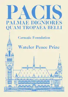 جائزة واتيلر للسلام. المبنى الموجود في الصورة هو قصر السلام في لاهاي. ترجمة من اللاتينية "باسيس بالما ديجنيوريس كوام تروبايا بيلي": راحتي السلام أكثر تكريمًا من غنائم الحرب.