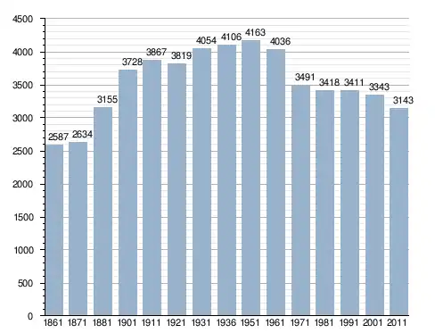 في سنة 1861 بلغ عدد السكان 2٬587 نسمة، وتطور العدد ليصل في سنة 2011 لـ 3٬143 نسمة.