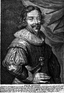 جاك كالوت رسام باروكي من دوقية لورين[2] (وهى دولة مستقلة على الحدود الشمالية الشرقية لفرنسا والحدود الجنوبية الغربية من ألمانيا ومُتداخِلة مع جنوب هولندا). ويُعد شخصية بارزة في تطور في الرسم القديم. فقد صنع أكتر من 1،400 تنميشًا، يُأرِّخوا الحياة في عصره؛ مُبينًا الجنود والمهرجون وسكارى والغجر والمتسولين وكذلك حياة البلاط. وحفر أيضا العديد من الصور الدينية والعسكرية، وأظهرت العديد من المطبوعات المناظر الطبيعية واسعة في خلفيتها.