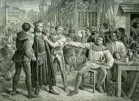 ![]() 'Lord Saye and Sele brought before Jack Cade 4th July 1450, painting by Charles Lucy | |