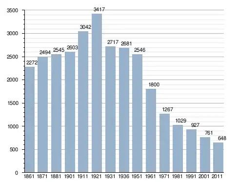 في سنة 1861 بلغ عدد السكان 2٬272 نسمة، وتطور العدد ليصل في سنة 2011 لـ 648 نسمة.