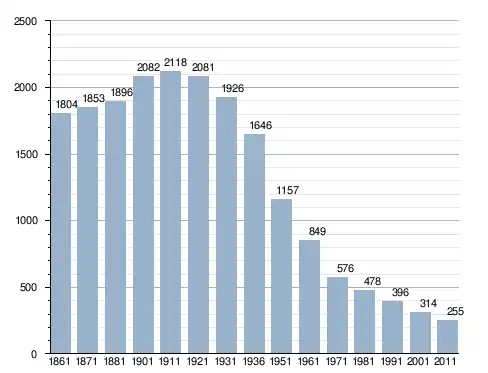 في سنة 1861 بلغ عدد السكان 1٬804 نسمة، وتطور العدد ليصل في سنة 2011 لـ 255 نسمة.