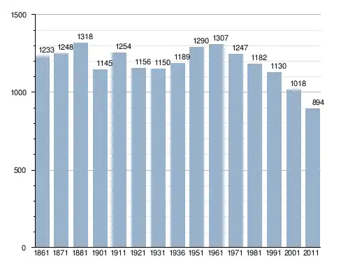 في سنة 1861 بلغ عدد السكان 1٬233 نسمة، وتطور العدد ليصل في سنة 2011 لـ 894 نسمة.