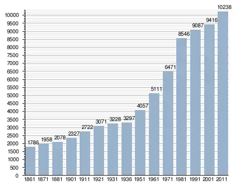 في سنة 1861 بلغ عدد السكان 1٬786 نسمة، وتطور العدد ليصل في سنة 2011 لـ 10٬238 نسمة.