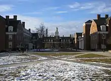 تتميز الكلية بكنيسة جالبريث التي تعلوها ريشة الطقس النحاسية، تم تصميمها على غرار رواق كنيسة Nash's All Souls في لندن. تشمل المباني الأخرى في College Green قاعة Chubb، موطن القبول في المرحلة الجامعية بالإضافة إلى مكاتب Bursar والمسجل ؛ إليس هول، موطن أقسام اللغة الإنجليزية والكلاسيكية وأديان العالم والفلسفة ؛ قاعة تمبلتون - بلاكبيرن التذكارية ؛ بالإضافة إلى Bryan Hall، قاعة إقامة من الدرجة الأولى. تم تأطير College Green من خلال بوابتين جامعتين رئيسيتين. بوابة الخريجين، التي بُنيت عام 1915، تحتوي على آيات معروفة جيدًا لمجتمع الجامعة والتي يمكن قراءتها عند الدخول إلى الحرم الجامعي ومغادرته.[27]