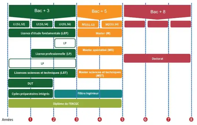 | المعاهد | المدرسة العليا لتكنولوجيا - الدار البيضاء المدرسة الوطنية للتجارة والتسيير - الدار البيضاء المدرسة العليا للأساتذة - الدار البيضاء المدرسة العليا لأساتذة التعليم التقني - المحمدية المدرسة الوطنية العليا للكهرباء والميكانيك - الدار البيضاء المدرسة الوطنية العليا للفنون والمهن - الدار البيضاء المدرسة العليا للفنون التطبيقية - الدار البيضاء | |||