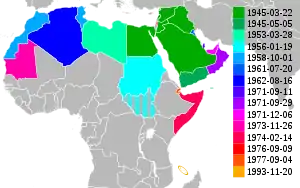 مقالة مفصلة: الدول الأعضاء في جامعة الدول العربية