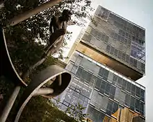 طُوّر الجزء الغربي من الحرم الجامعي بعد الحرب العالمية الثانية، ويتألف بشكل رئيسي من الهياكل المعمارية الحداثية التي تضم المختبرات ومكاتب التدريس.[26] يُعتبر مجمع مكتبة روبارتس الضخم، الذي بُني في عام 1972 وافتتح بعد عام من ذلك في عام 1973 أهم مثال على العمارة القاسية. يتميز المبنى بمنظر ببديع بارز، واستخدام مكثف للتصاميم الهندسية المثلثية والهيكل الخرساني الشاهق المكون من أربعة عشر طابقاً فوق حقل من الفضاء المفتوح والأشجار الناضجة.[37] خُصّص مبنى سيدني سميث هول لكلية الآداب والعلوم، فضلا عن بعض الإدارات داخل الكلية. وخُصّص مبنى ليزلي إل دان لكلية الصيدلة، الذي تم الانتهاء منه في عام 2006 وصُمّم على الطراز المعماري فائق التكنولوجيا المُكوّن من الزجاج والصلب بواسطة المهندس المعماري البريطاني نورمان فوستر.[38]