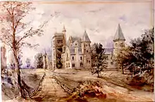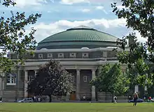 للكلية.[6][7] بُني مبنى المدرسة على الطريقة اليونانية الإغريقية المكون من ثلاثة طوابق في الموقع الحالي في كوينز بارك.[8][9][10]