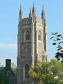 تتجلى الهندسة المعمارية من خلال مزيج من العمارة الرومانية والعمارة القوطية الحديثة المنتشرة عبر الأجزاء الشرقية والمركزية من الحرم الجامعي، والتي يعود معظمها إلى عامي 1858 و1929. يقع قلب الجامعة التقليدي، والمعروف باسم الحرم الأمامي، بالقرب من مركز الحرم الجامعي في حديقة بيضاوية محاطة بدائرة كلية الملك. الجزء الرئيسي للجامعة هو المبنى الرئيسي للكلية الجامعية، الذي بُني في عام 1857 بمزيج انتقائي من العناصر المعمارية للعمارة الرومانسكية والعمارة النورمانية.[26] صُمم الأثر المثير لهذا التصميم الممزوج من قبل المهندس المعماري فريدريك وليام كمبرلاند. لقي هذا الأثر إشادة من الزوار الأوروبيين في ذلك الوقت. وقال السياسي البريطاني اللورد دوفرين خلال زيارته لكندا في عام 1872: