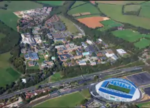 أما فيما يتعلق بموقع الجامعة الجغرافي، فإنها تتميز بكونها الجامعة الوحيدة في المملكة المتحدة التي تقع بشكل كامل ضمن منطقة مصنفة على انها منطقة ذات جمال طبيعي متميز. ويقع حرم الجامعة الذي صممه السيد باسل سبينس في قرية فالمر بمحاذاة محطة قطار القرية. وتتميز الأبنية في هذه الجامعة من الناحية المعمارية حيث حصل عدد منها على جوائز للإبداع المعماري في بريطانيا.
