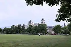 كلية يوتا الزراعية، تلقت أيضًا دفعة ملحوظة في الطلاب كنتيجة مباشرة للحرب العالمية الأولى.[39] تم تحويل الكليات والجامعات في جميع أنحاء البلاد مؤقتًا إلى ساحات تدريب لفيلق تدريب الجيش الطلابي قصير العمر، تتألف من الطلاب الذين تلقوا تعليمات عسكرية ويمكنهم بعد ذلك العودة إلى تعليمهم بعد خدمتهم العسكرية.[40] نظرًا لأن الحرم الجامعي الصغير آنذاك لم يكن بإمكانه دعم مثل هذه الأعداد الكبيرة من الطلاب الجدد، أقنع رئيس الكلية إلمر بيترسون الولاية في عام 1918 بتخصيص الأموال للمباني الدائمة من الطوب، والتي يمكن استخدامها كثكنات لطلاب SATC خلال الحرب، والتعليم بعد ذلك.[41] على الرغم من انتهاء الحرب قريبًا، تضاعف حجم الحرم الجامعي بشكل أساسي.[31]