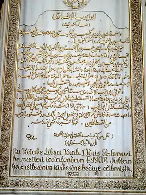 |CitationClass=تم تجاهله (مساعدة) - Murtaza Gürsoy: Meşhur Eyüp Sultan (The famous Ayyub Sultan), pp. 179-180