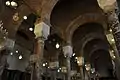 قبة الصحن الموجودة في مدخل قاعة الصلاة، تتكون من زخارف من حجر المغرة والطابوق الأحمر. المحارب الموجودة في المسجد ترجع للطراز الفاطمي. قاعة الصلاة المعمدة ذات الشكل المربع (56 متر على 24 متر)، تغطي مساحة 344 1 متر مربع، بينما حوالي 160 عمود يحددوا حدود 15 فناء و6 أروقة. الصحن (الفناء) الأوسط والرواق ورواقه أعرض من البقية بقليل (4.80 متر مقابل 3) يتقاطعون أمام المحراب الذي هو نفسه تسقبه قبة مكتوب عليها اسم الخليفة العباسي المستعين بالله. المنارة المربعة في الزاوية الشمالية الغربية للفناء، يبلغ طولها 43 متر، وهي تشبه زخرفة المنارة الموحدية في جامع القصبة، وهي مصنوعة من الحجر الجيري على خلفية الحجر الرملي.