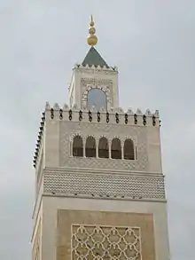 أخيرا، منارة من طراز المرابطين والموحدين، للمعماريين طاهر بن صابر وسليمان النيقرو، تم إضافتها للمسجد في 1894، في مكان المنارة التي تم بنائها تحت حكم الباي حمودة باشا المرادي في 1652. تم تمويلها من أموال الحبوس وكلفت 000 110 فرنك تونسي.