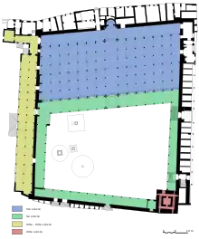 الواجهة الشرقية، تم إتمامها بفناء مزخرف بأعمدة من الطراز الحفصي.
