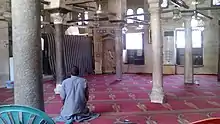 يوجد بوسط الجدار الجنوبى وهو منبر يتميز بدقة شديدة في تنفيذ زخارفه له باب من ضلفتين نفذت عليه خارف بطريقة الحشوات المجمعة (العاشق والمعشوق) وإستخدمت نفس هذه الطريقة في تنفيذ زخارف الريشتان ويعلو باب المنبر لوح خشبى حفر عليه هذا النص :( " إن الله وملائكته يصلون على النبى يا أيها الذين آمنوا صلوا عليه وسلموا تسليما" أنشأ هذا المسجد والمنبر الأمير مصطفى بن يحيى بن عديان ) كما نقش عليه تاريخ الفراغ منه وهو صفر 1150 هـ ويتوج هذا المنبر جوسق يعلوه قبة على شكل مبخرة .