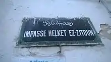 لوحة معدنية تشير إلى زنقة حلقة الزيتون