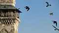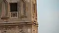 الكتابات التي تغطي أوجه المئذنة الأربعة تحمل عناصر العمارة القوطية.