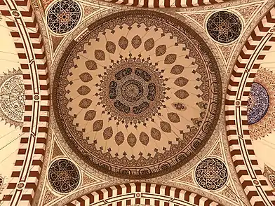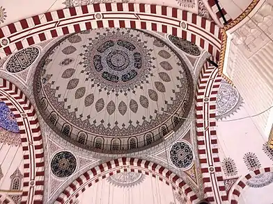 خفف معمار سنان [19] من جمود الكتلة وحرّكها من الخارج عن طريق تغطية رؤوس الدعائم بقباب على هيئة أبراج عوضا عن بناء برج صغير حول القبة.[14]