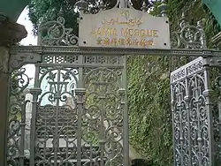 اسم المسجد مكتوب باللغة العربية والصينية وبالأحرف اللاتينية