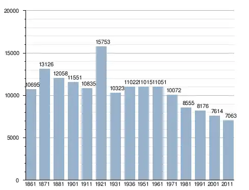 في سنة 1861 بلغ عدد السكان 10٬695 نسمة، وتطور العدد ليصل في سنة 2011 لـ 7٬063 نسمة.