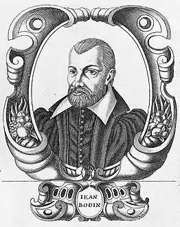 جان بودان (بالفرنسية: Jean Bodin) من مواليد 1530 في أنجيه ووفيات 1596 ، هو فيلسوف فرنسي يعتبر صاحب نظرية السيادة ومن فلاسفة المذهب التجاري.[5][6][7] جان بودين (1530 - 1596)، هو قانوني وفيلسوف سياسي فرنسي، عضو برلمان باريس، وأستاذ القانون في تولوز. واشتهر لنظريته عن السيادة.