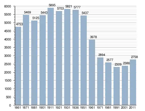 في سنة 1861 بلغ عدد السكان 4٬753 نسمة، وتطور العدد ليصل في سنة 2011 لـ 2٬758 نسمة.