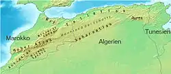 تقع في أقصى شرق جبال الأطلس في شرق الجزائر وبعض الأجزاء من غرب تونس تبلغ أعلى قممها في جبل شيليا التي تصل إلى 2 328 م ويتراوح علو السلسلة ب 2000 متر عن سطح البحر.