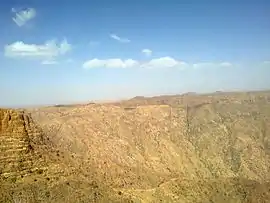 1=منظر عام لبلاد قبيلة حوالة يظهر جبل أثرب