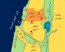 خريطة تظهر منطقة شمال جبال نابلس وجبال الجليل