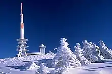 Sender Brocken هوائي الإذاعة على قمة بروكين في الشتاء.