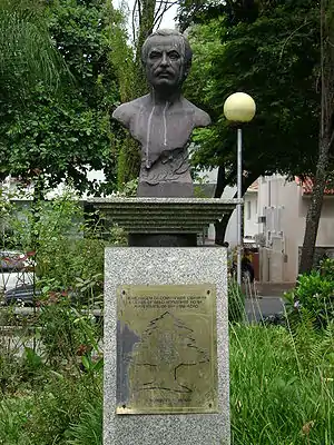 - نحت جبران خليل جبران على قاعدة من الرخام في بناء النصب التذكاري العربي في كوريتيبا، بارانا، البرازيل.