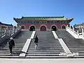 يوجد كذلك معبد كبير في القمة مع إمكانية الوصول إليه بواسطة مصعد هوائي أو ممر للمشاة. تم بناء المعبد الأصلي في عهد سلالة تانغ الحاكمة. وحاليا، تم بناء الموقع على طراز سلالة تانغ المعماري، ويضم مطعمًا نباتيًا على مساحة 10000 كيلومترا مربعا.