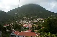 ![]() سابا، ويظهر بالصورة قمة جبل سينيري بين السحب | |