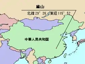 تقع جبال لوشان في شمالي مقاطعة جيانغشي الصين، وتعتبر إحدى الجبال المشهورة في الصين، تتميز بمناخها المعتدل، حيث لا تتجاوز درجة الحرارة فيها 22 في الصيف.[2]